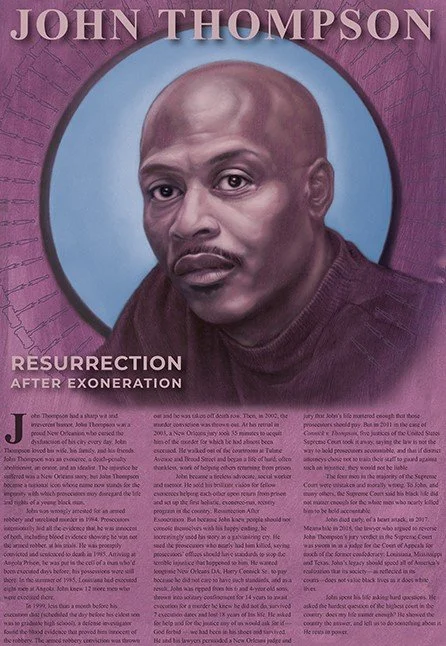 John Thompson (JT) spent 18 years wrongly incarcerated, including 14 years on death row at the Louisiana State Penitentiary before he was exonerated of all charges in 2003. He won a civil lawsuit against the State of Louisiana, specifically the racist administration led by then-District Attorney Harry Connick, Sr. for $20 million, which was eventually overturned by the US Supreme Court. He went on to create Resurrection After Exoneration (RAE) at 1212 St. Bernard Avenue. What began as an organization to support people like him returning home grew into an organization that combined the insights of formerly incarcerated people with advocacy for reform and true justice.