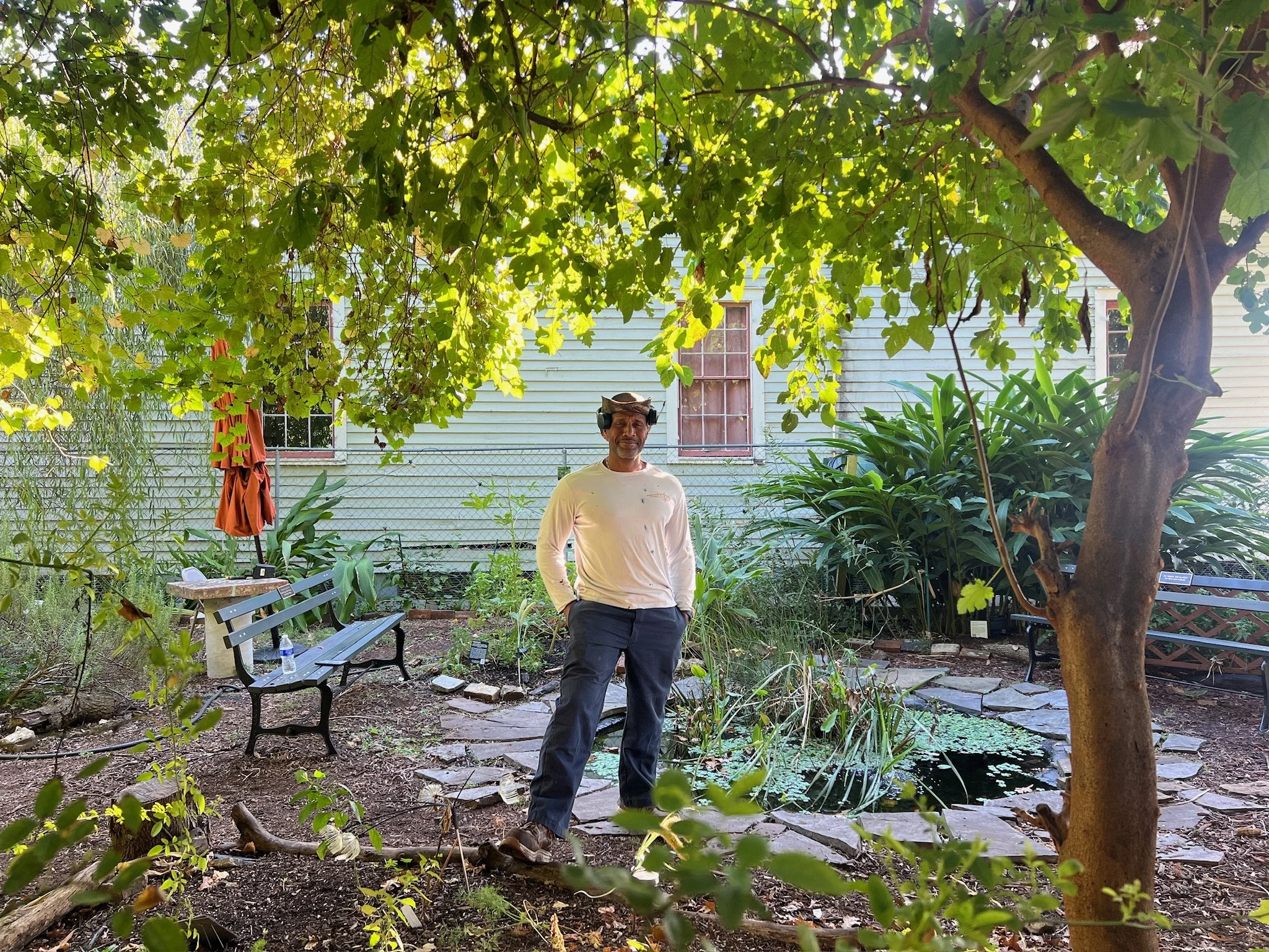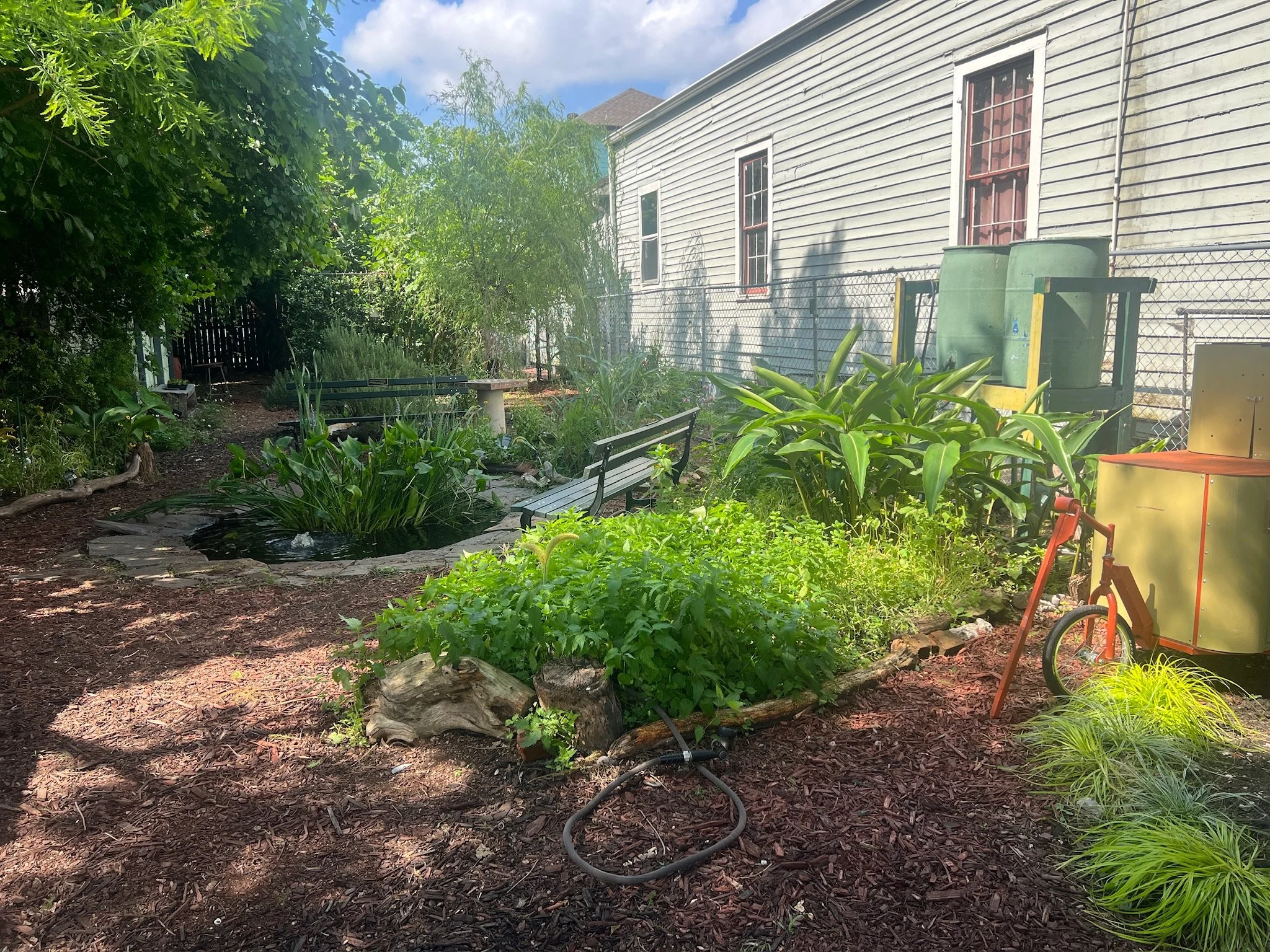 The Abolitionist’s Sanctuary, located on N. Robertson St. in New Orleans, is a space for connection and reflection, tucked away from the most active streets of the Seventh Ward. The gardens have experienced many different design iterations since jackie sumell and others started stewarding them in 2007, including The 7th Ward Boys & Girls/ Rainbows & Unicorns Garden, A Garden to Dye For, and are home to the first-ever Solitary Garden, first grown in collaboration with Albert Woodfox in 2014.